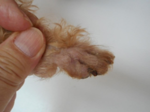 痒み、赤みもとれてかなり楽そうです。 足先にも毛が生えてきて、下腹部の象皮様皮膚と色素の沈着も改善されて来ています。 だんだんと治って来るのを見るのは嬉しいものです。