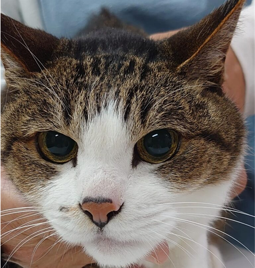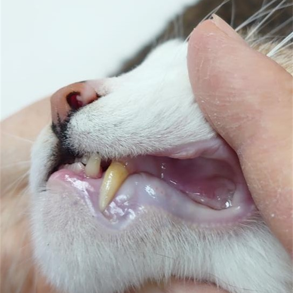 最近、舌をしきりにペロペロしだし、右顔の腫れに飼い主さんが気がついた。