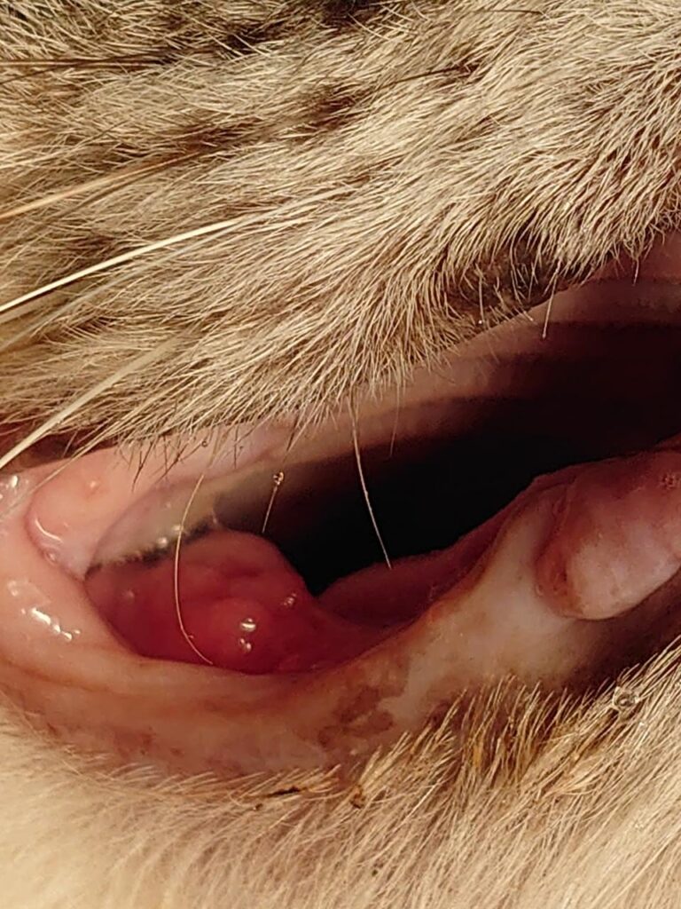 一見すると、ガンが発育し隆起してきたようにみえるが、