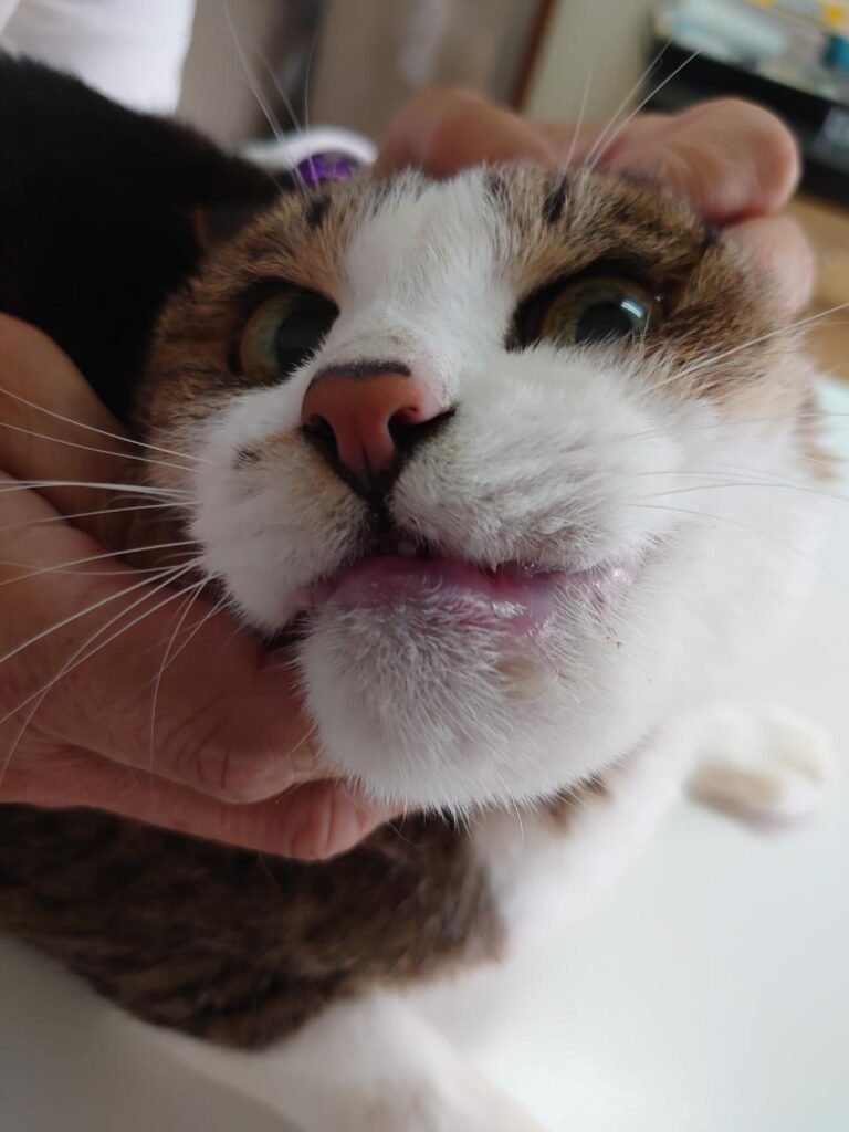 正面から見ると特に下顎部が腫れて、痛々しい。。