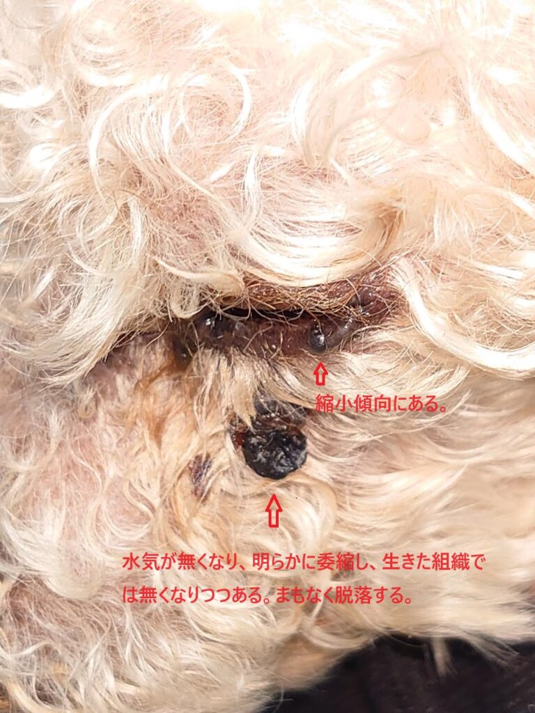 他のイボ(眼瞼のは悪性黒色腫の疑いが強い)も縮小傾向にあります。