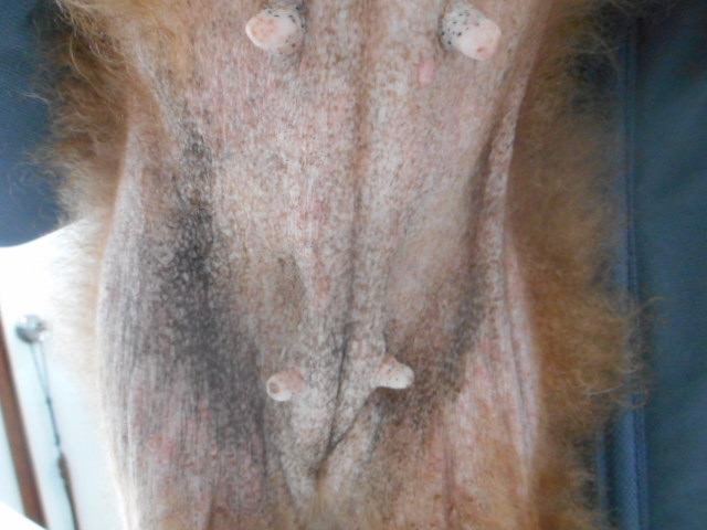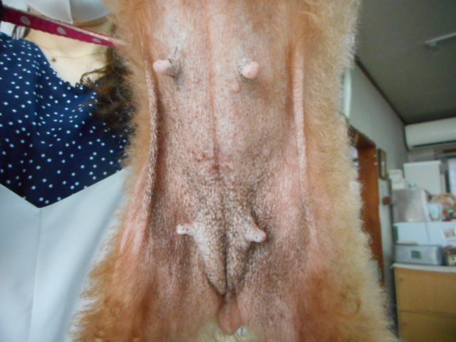 乳頭も腫れている。赤いブツブツ発疹も全体にある。
