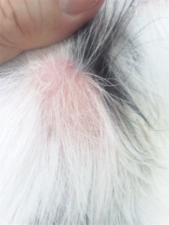 1週間前に脱毛が多くなって、掻きだしたとのこと。