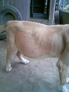 体重は推定で25kg、腹水が相当溜まっています。